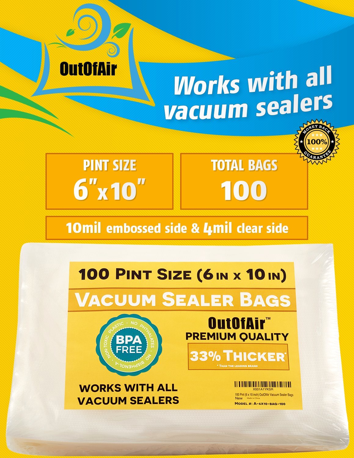 Buy 200 Vacuum Sealer Storage Bags, 8 x 12 inch Thick BPA Free Quart Compatible with All Vac. Vacuum sealing extends food storage time - locking in freshness, flavor and nutritional. Universal vacuum sealer bags; With these vacuum sealer bags, the user can create custom length bags for all types of food; Includes two 50 foot tubes of reusable bags; Compatible with virtually all kitchen vacuum air sealing systems; Multilayered bags seal in freshness; Each 8 in